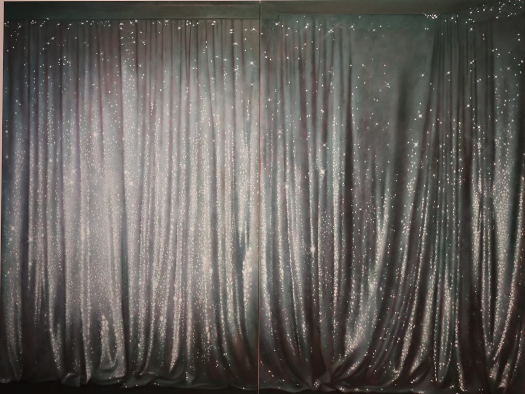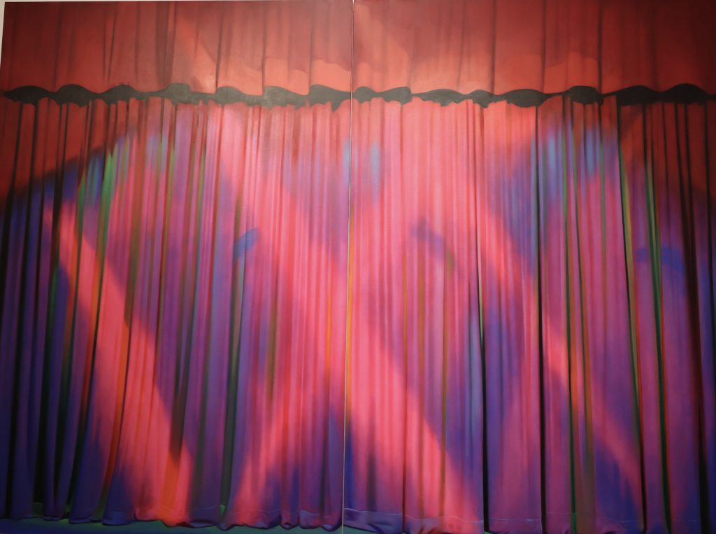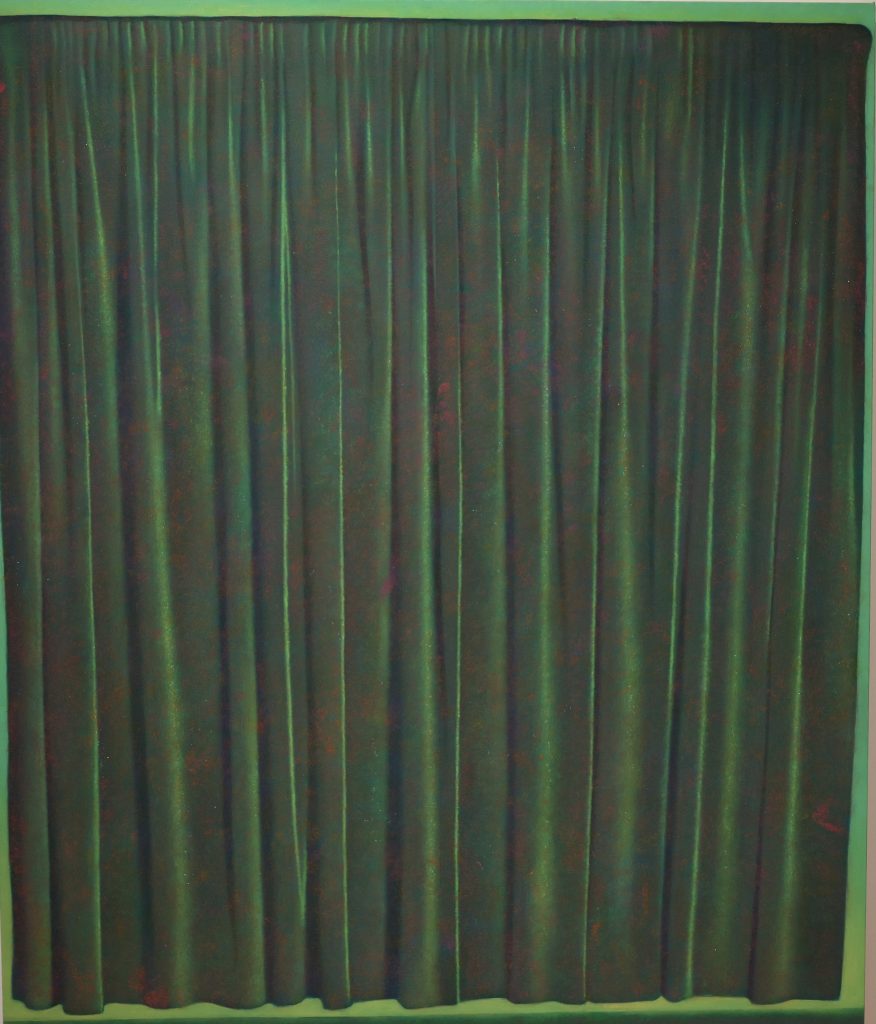 Im nächsten Raum beginnt für mich die eigentlich interessante Ausstellung einer jungen Künstlerin aus Manchester – Louise Giovanelli. Hier stellt Louise Giovanelli ihre in Öl auf Leinwand gemalten Bilder aus. Vorhänge, die den Schein des Echten vorziehen. Hier verschwindet der Stoff und wird zur Farbe.