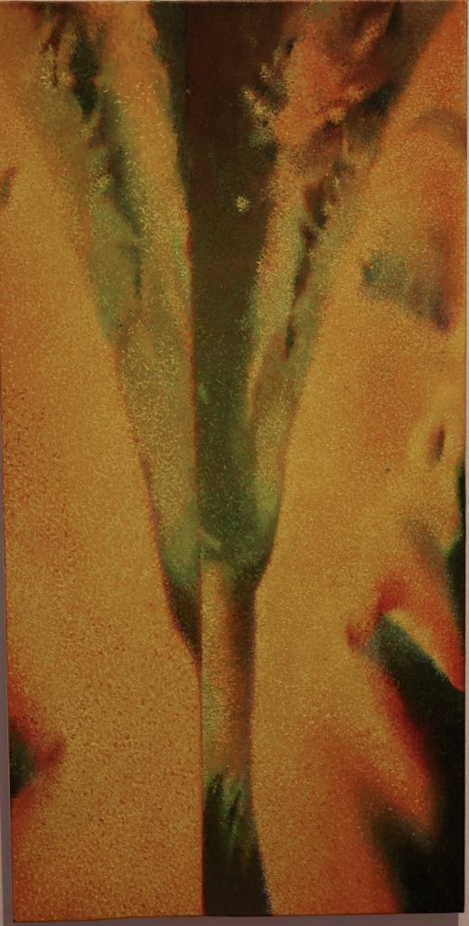 Ein Gemälde, dass ich bei näherer Betrachtung nicht deuten beziehungsweise einordnen konnte, das aber meine Aufmerksamkeit in seinen Bann zog. Ein Gemälde mit goldenen Motiven. Erst zu Hause bei der Betrachtung der Fotos, die ich in der Ausstellung gemacht hatte, erkannte ich die Genialität des Gemäldes.